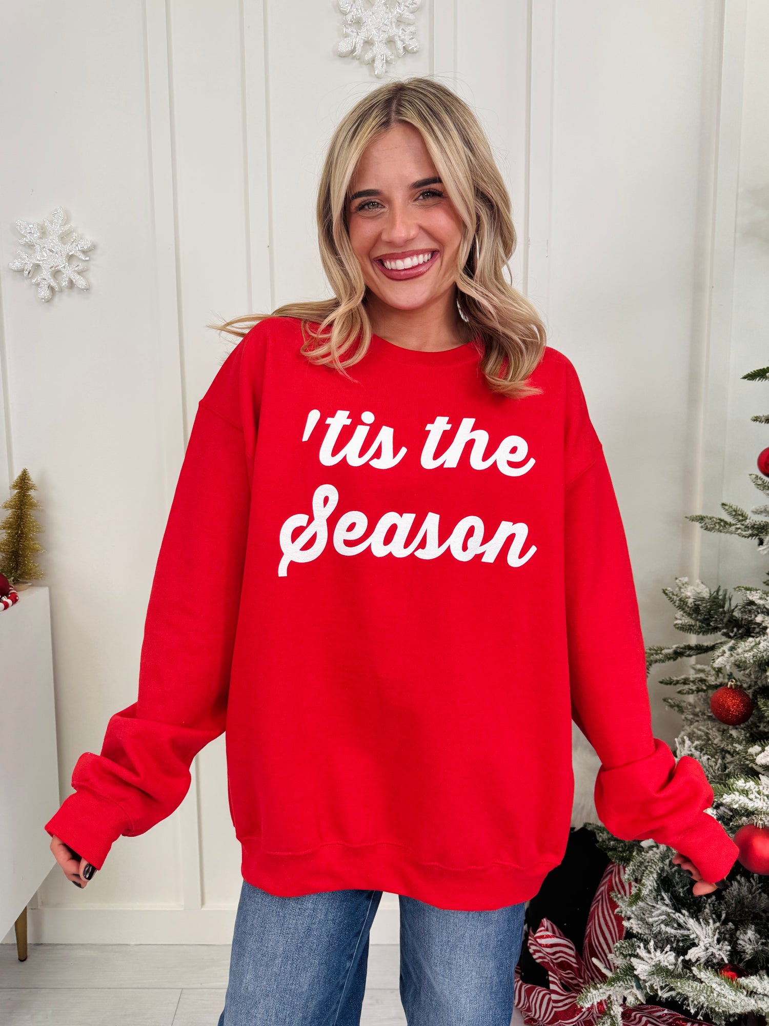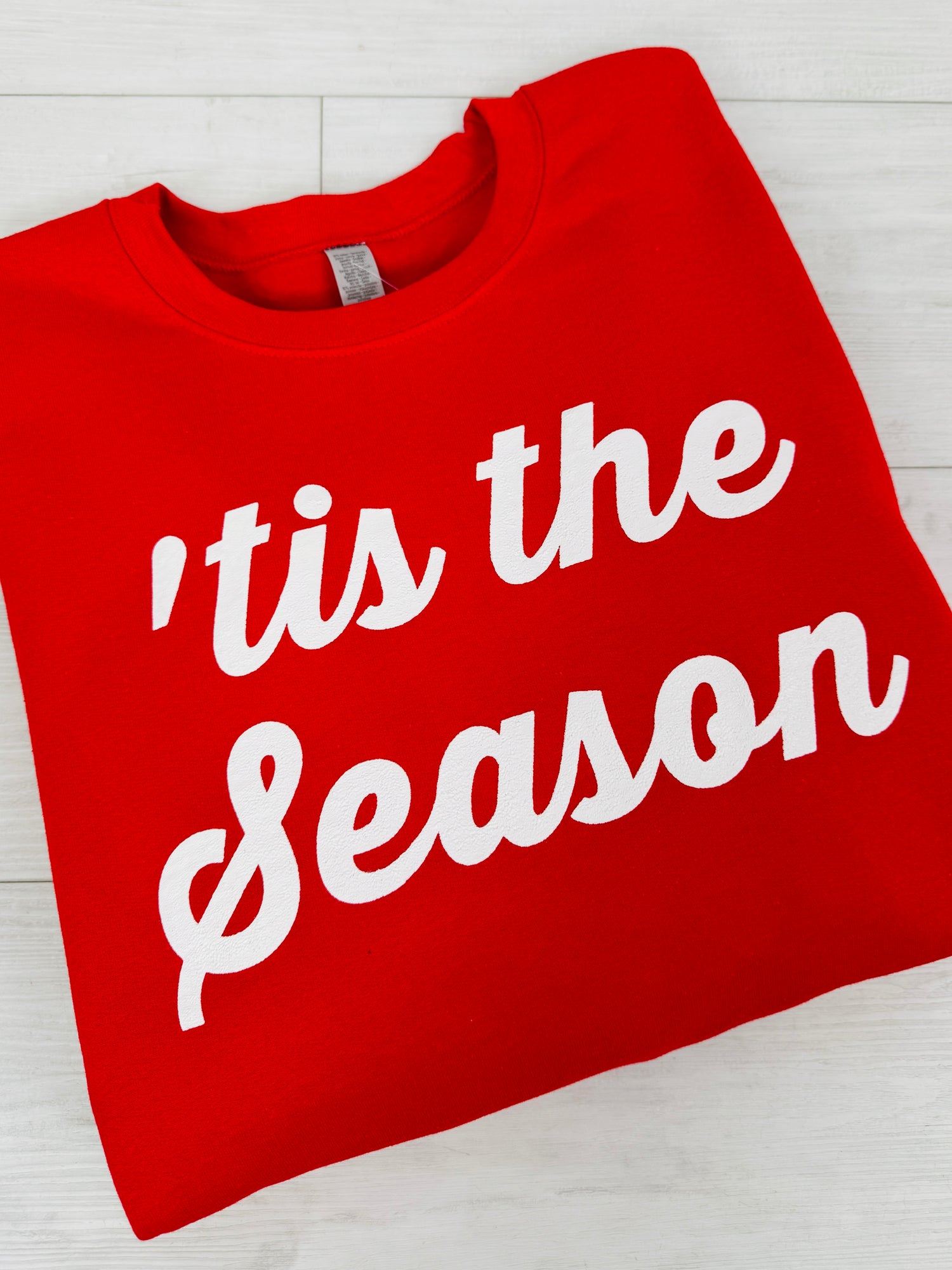 Spread a little holiday joy with the 'Tis the Season Script Crewneck — a classic and cozy favorite for the most festive time of year. Featuring bold white script lettering on a cheerful red crewneck, this graphic perfectly captures the spirit of the season with timeless charm.