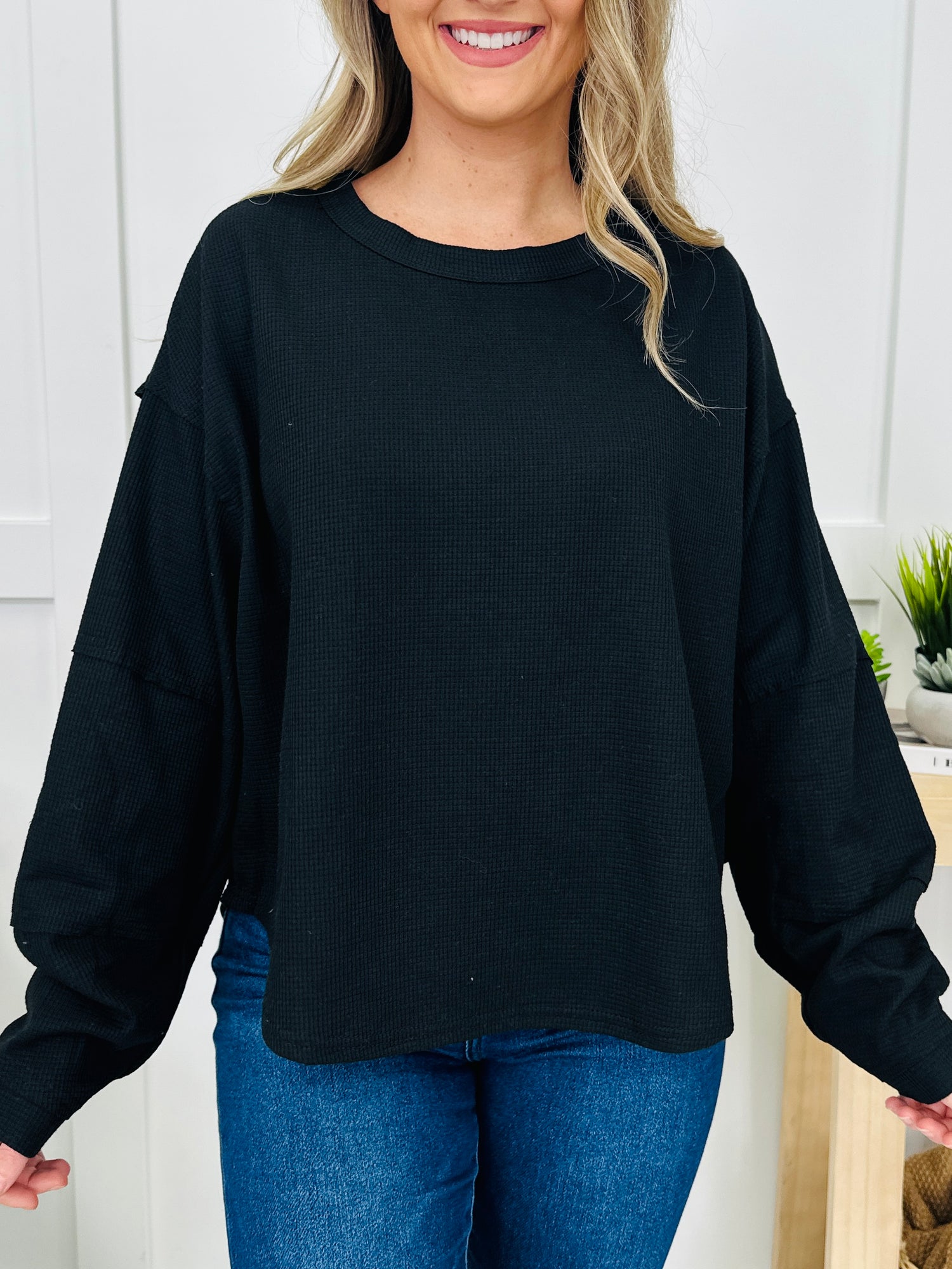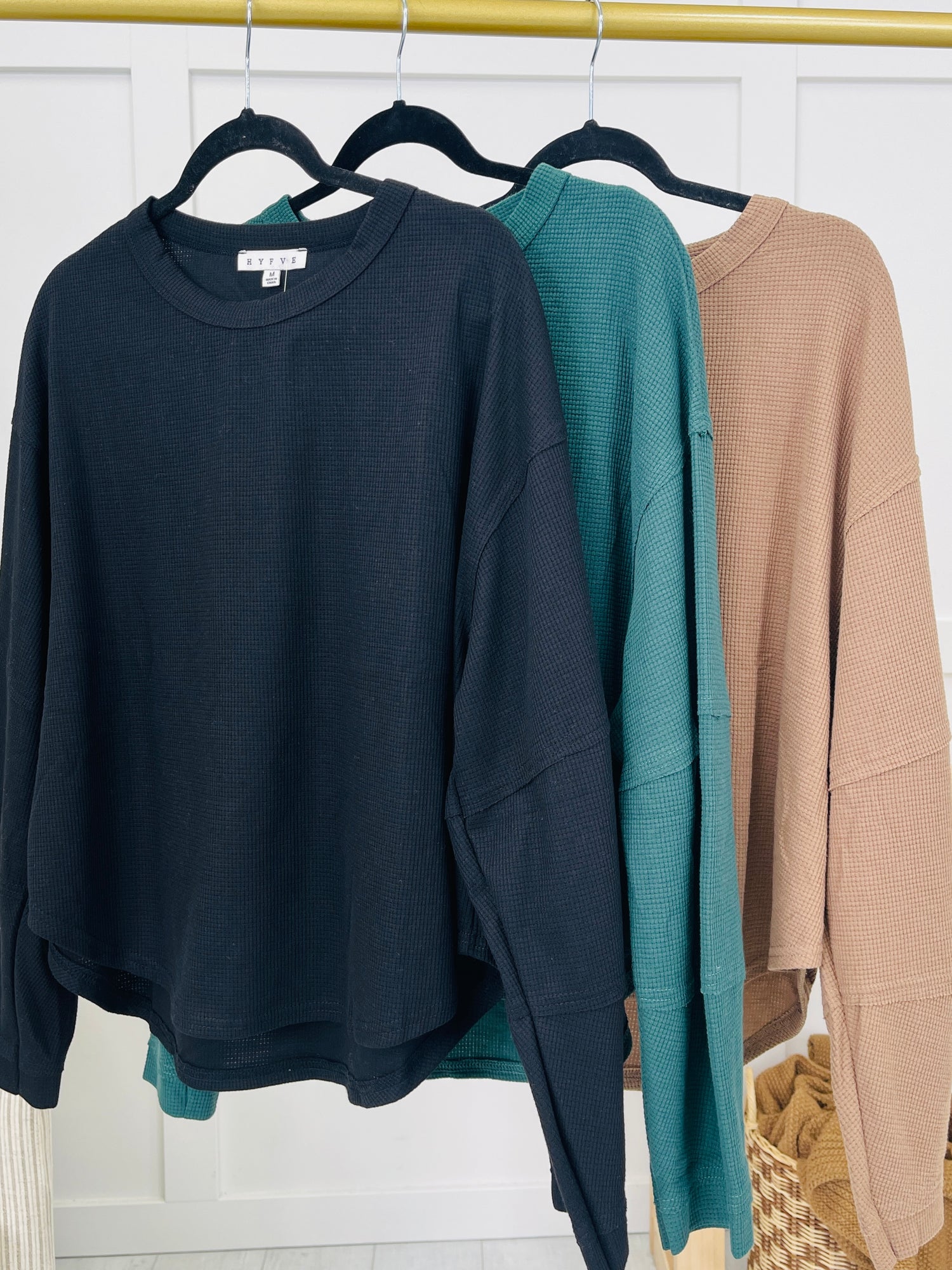 This easygoing top shows off a textured knit with a classic crew neckline. The drop-shoulder sleeves and relaxed shape give it that effortless, throw-on feel for everyday wear. Finished with a straight hem, it layers smoothly and comes in several colors so you can grab your favorite.