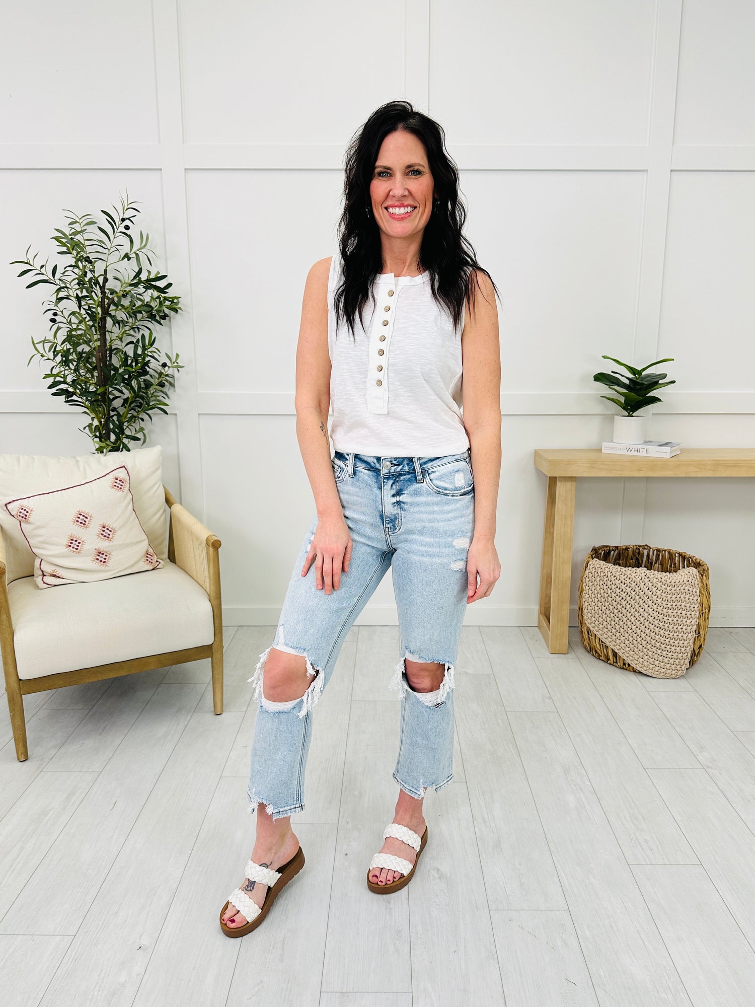 Our number one selling summer jeans are finally back in stock! These are the most comfortable and trendy jeans you will ever own! They are buttery soft and feature incredible stretch and recovery, which means they don't sag as the day goes on! We are obsessed with the trendy distressing and hem. These will be your new go-to summer jean!
