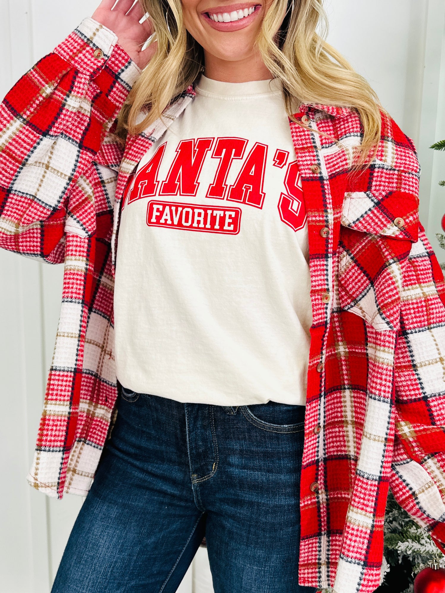 [message]Bring on the holiday cheer with our Very Merry Shacket! This new holiday arrival is made from the softest fabric that's sure to give you cozy holiday vibes this season. The oversized, relaxed fit makes it perfect for layering with your favorite holiday graphic tees. The length is perfect to wear it with both jeans and leggings-- and that's always a win in our book!