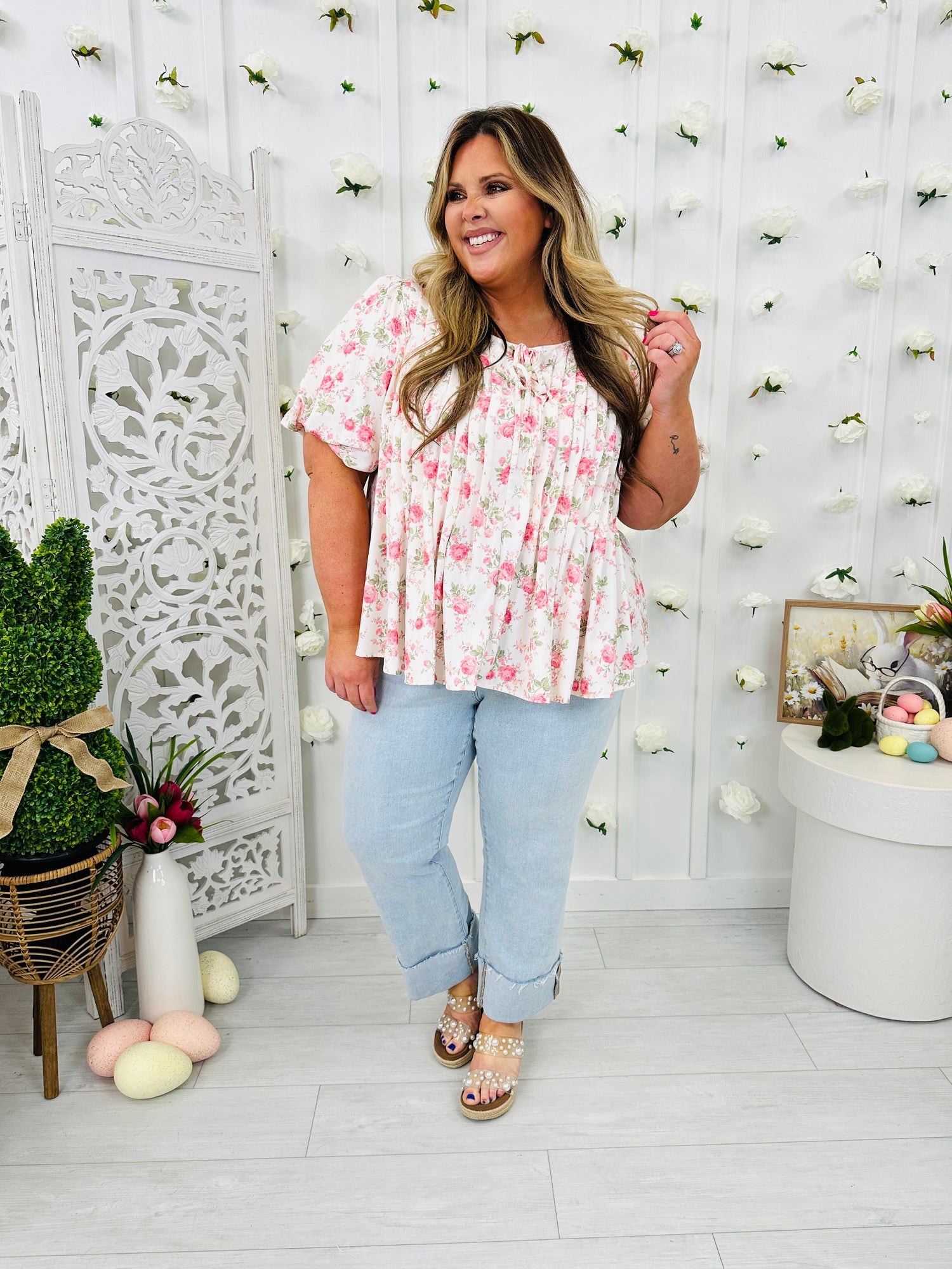 This floral top combines comfort with a fun, feminine style that’s perfect for any occasion. The pleated design adds a classy touch of texture, while the tie neckline gives it some extra sweet detailing. With its flowy, relaxed fit, this piece provides the ultimate in comfort and ease. Pair it with your favorite dyed denim or jeans for an effortless, chic outfit that’s sure to turn heads.