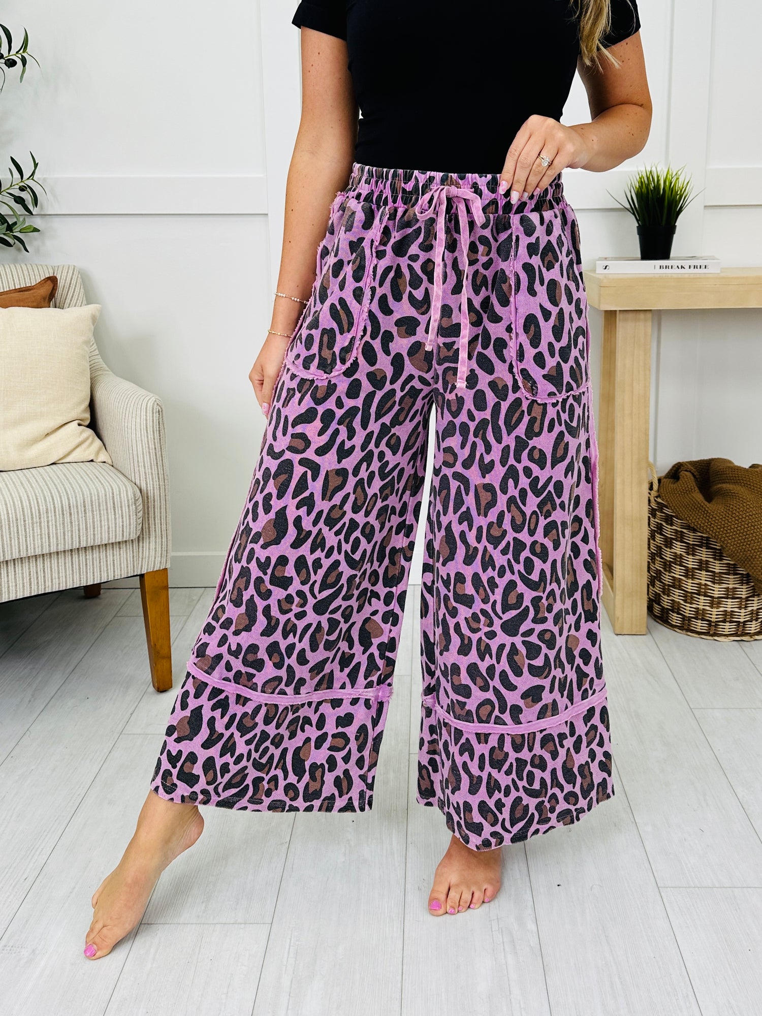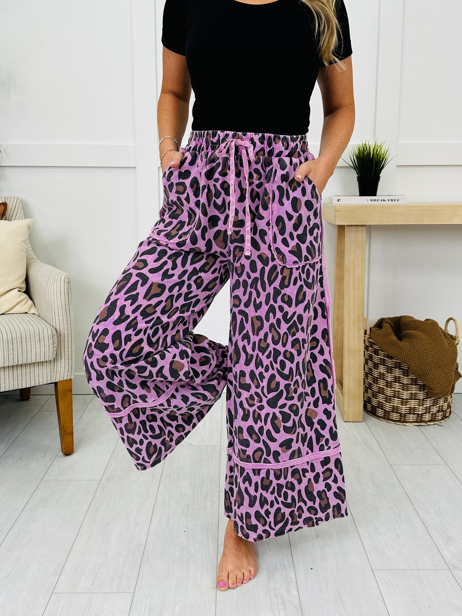 Make a fierce statement while keeping things effortlessly comfy in these bold leopard print pants. Designed with a stretchy drawstring waist, they offer a customizable fit you’ll love lounging or stepping out in. The flowy wide-leg silhouette adds movement and style, making them perfect for pairing with your favorite casual tops or cozy pullovers.