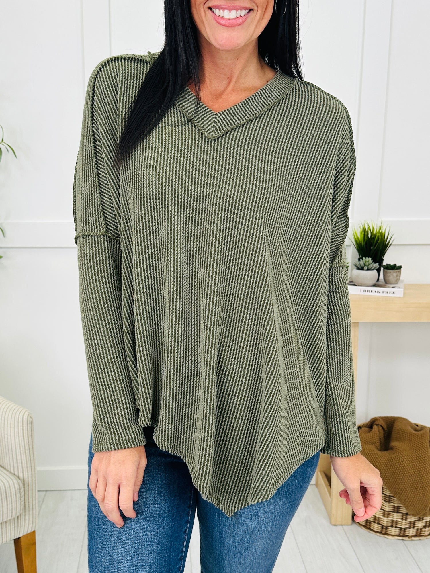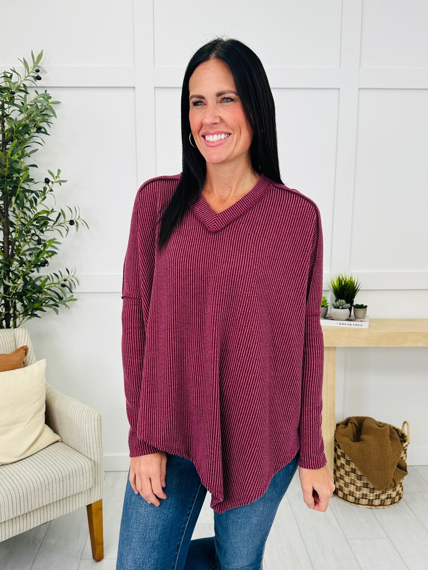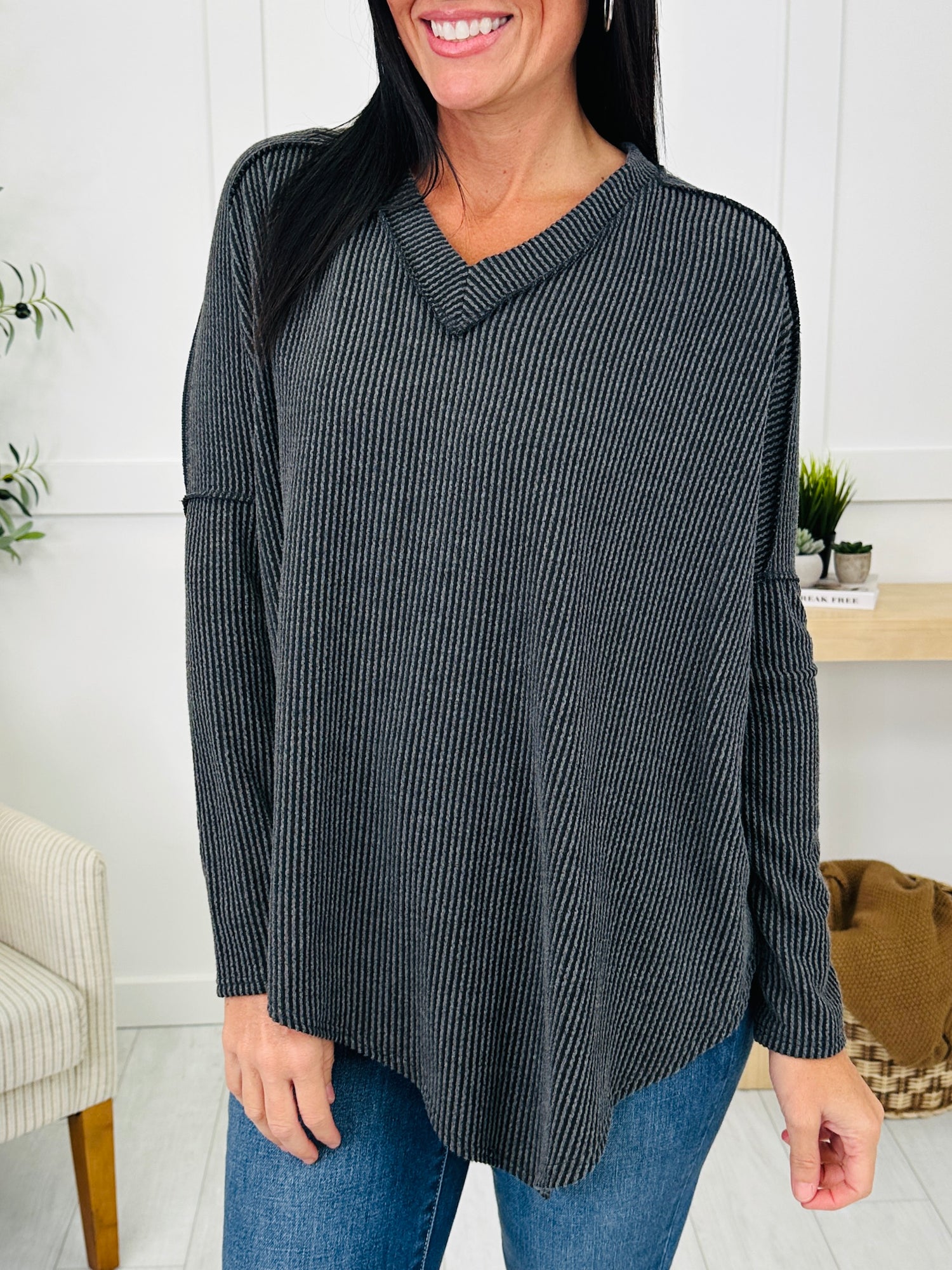This top brings an effortless flow with its pointed hem detail and relaxed, drapey fit- making it a piece that stands out in the best way. The subtle raised rib texture gives it that extra bit of dimension, keeping the look polished yet casual. It’s an easy-to-style piece that works just as well with denim as it does with your favorite leggings.