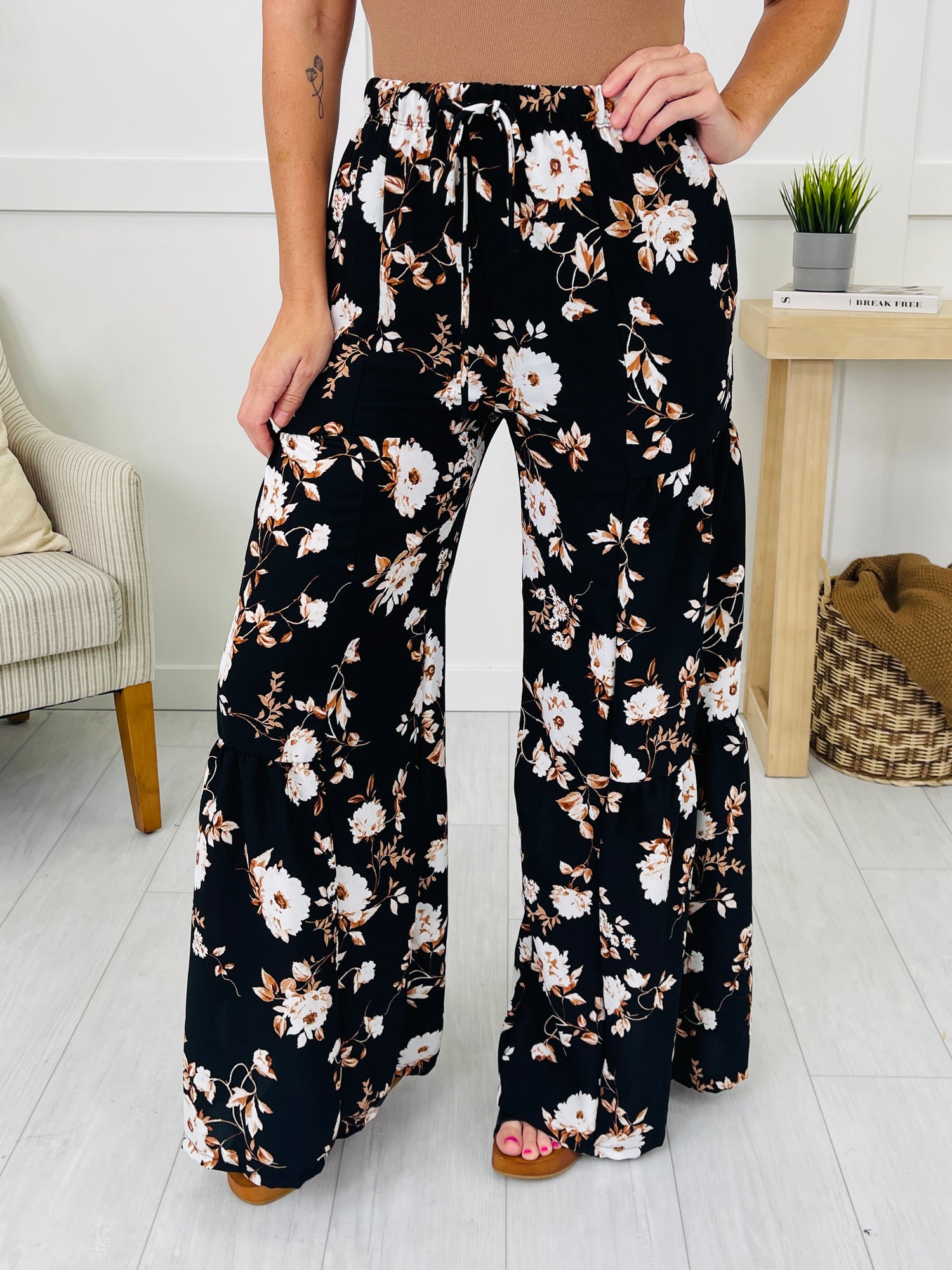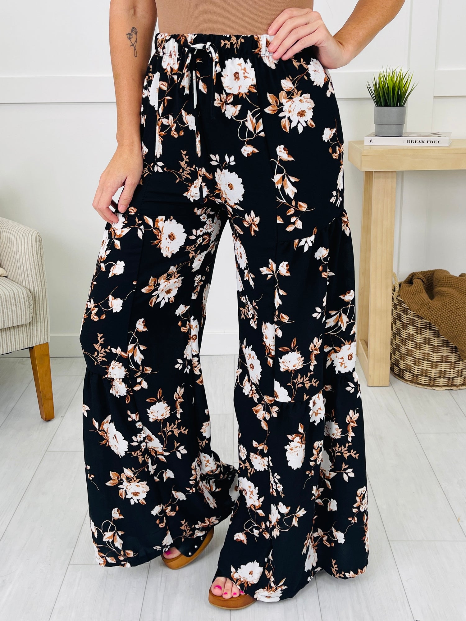 Slide into effortless elegance with these flowy tiered bottoms, designed to move with you from brunch to beachside strolls. The adjustable elastic drawstring waist ensures a perfect fit while the cascading tiers add playful volume to the wide-leg silhouette. Finished in a timeless floral motif, they pair beautifully with tank tops or lightweight knits for a chic, laid-back look.