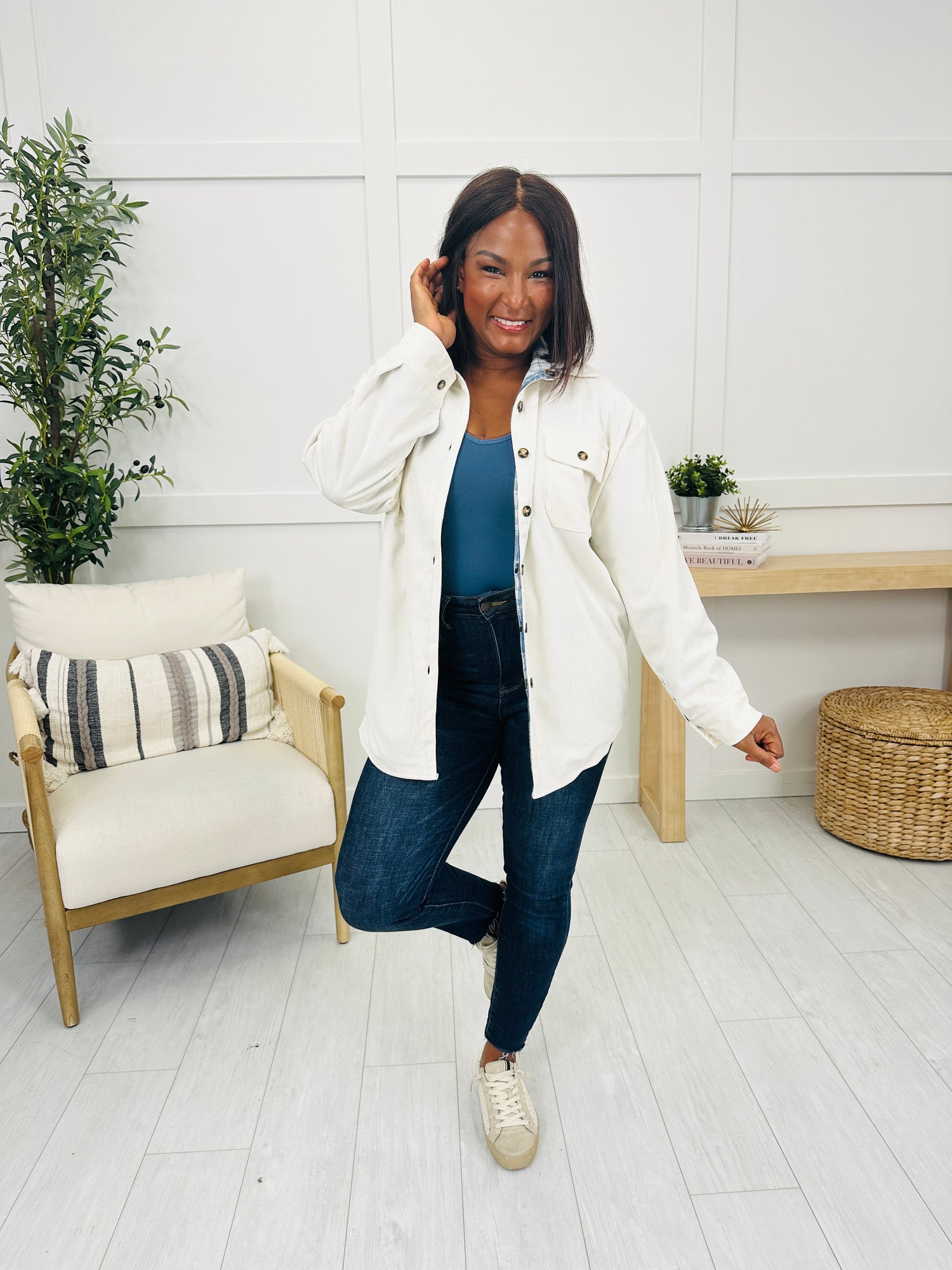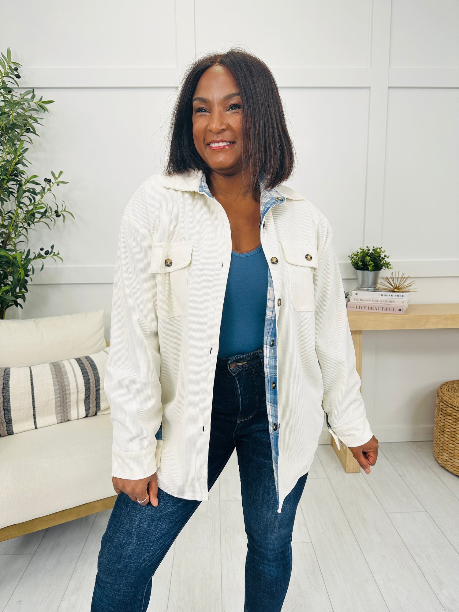 This versatile piece offers a reversible design, allowing you to switch between a cozy plaid flannel side and a sleek corduroy side. With functional buttons and a relaxed fit, it's perfect for layering and adding a stylish touch to any outfit. Whether you want the warmth of plaid or the texture of corduroy, this flannel has you covered for all your seasonal needs.